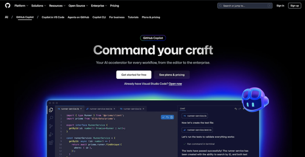 GitHub Copilot brings AI directly into your code editor with real-time suggestions as you type. If you live in VS Code, JetBrains, or Neovim, this native integration feels invisible.